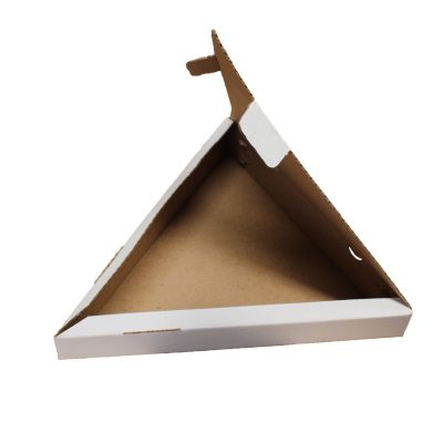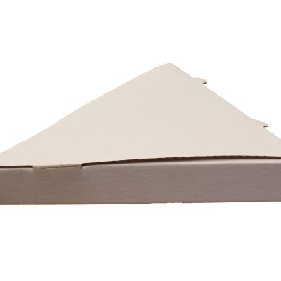 Caja para rebanada pizza de material microcorrugado, color blanco con medidas 26cmx26cmx24cm y 4cm de alto.